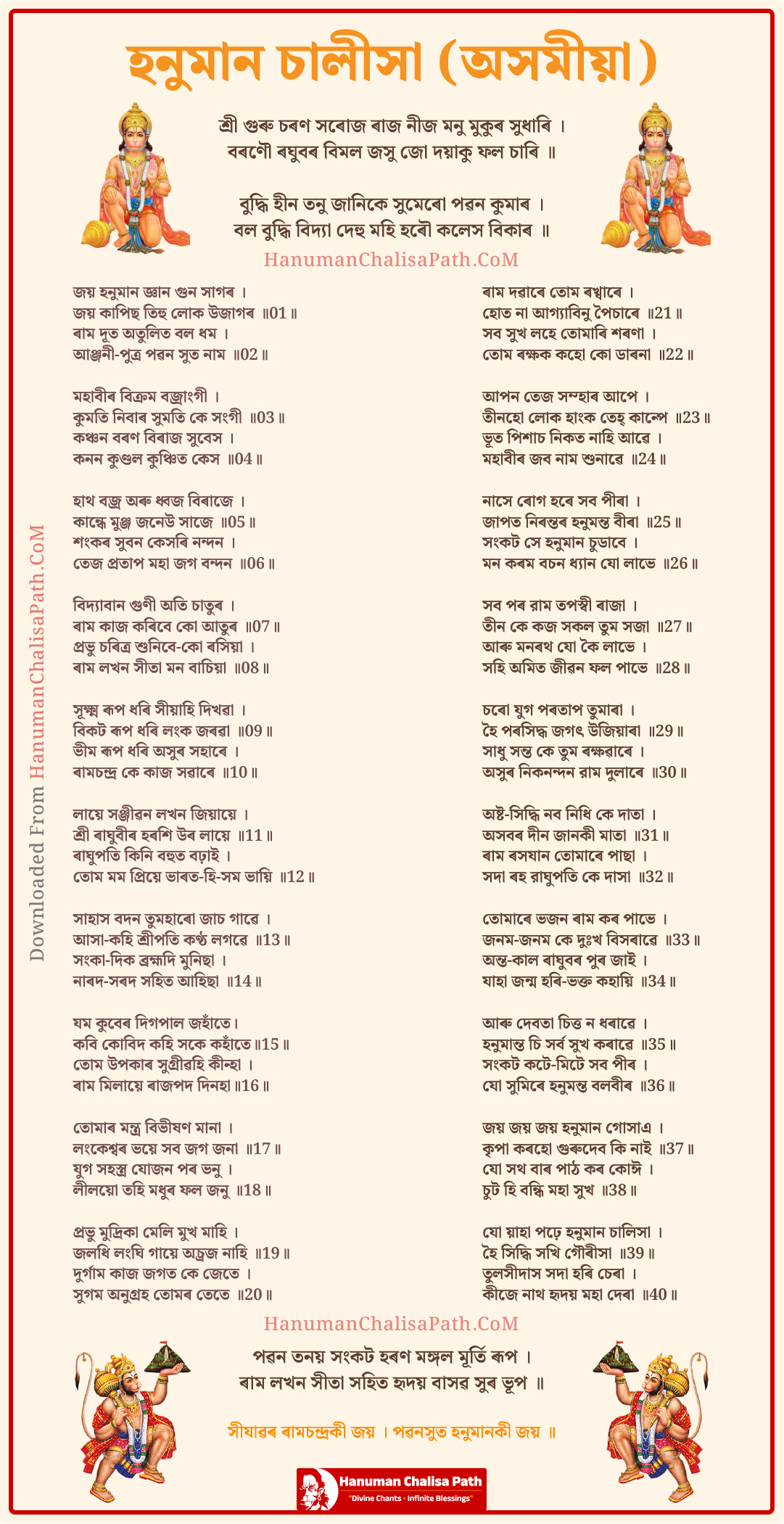 You can download the hanuman chalisa in assamese pdf by clicking the button below or you can choose to print it out.